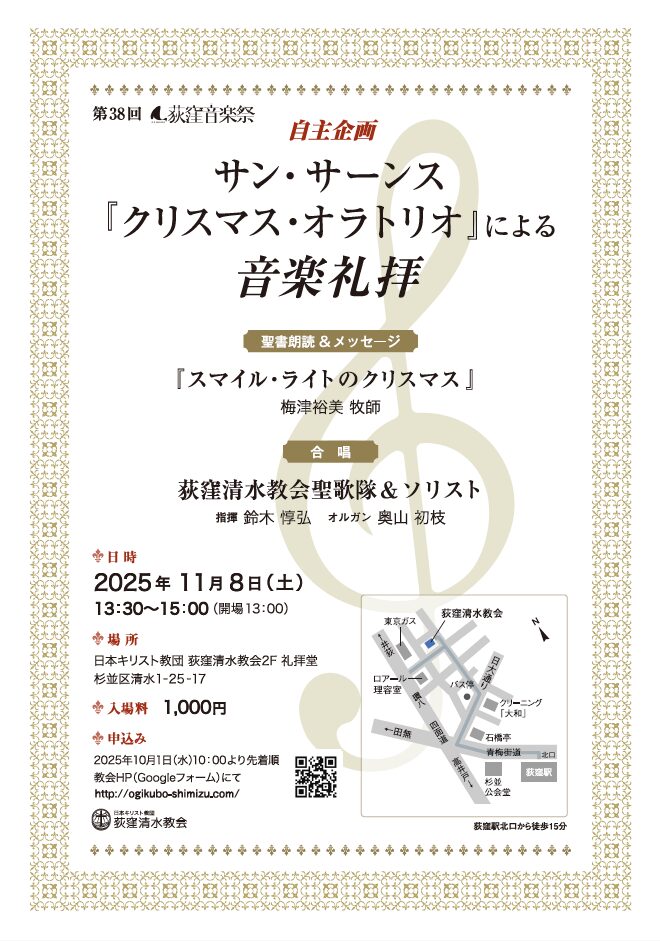 場所 日本キリスト教団荻窪清水教会2F礼拝堂